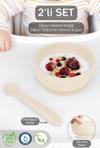 Meleni Baby Vakumlu Silikon Bebek Mama Kasesi - Vakum Tabanlı Silikon Kase - Silikon Diş Kaşıyıcı Kaşık - Bej