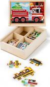 • İçinde 4 adet 12 parçalık yapboz vardır.(1 yarış arabası, 1 lokomotif, 1 itfaiye aracı ve 1 okul otobüsü).