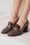 Melly Acı Kahve Rugan Süet Detaylı Kadın Topuklu Ayakkabı