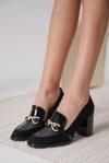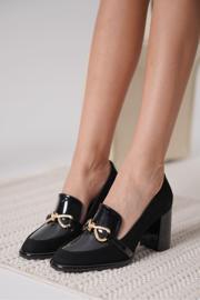 Melly Siyah Rugan Süet Detaylı Kadın Topuklu Ayakkabı