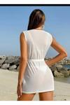 Melonika Belden Büzgülü Sıfır Kol Şık Plaj Elbisesi