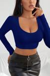 Melonika Kadın Mavi Uzun Kol Kare Yaka Crop Top Bluz