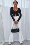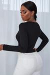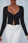 Melonika Kadın Siyah Uzun Kollu Düğmeli Göğüs Ve Göbek Dekolteli Crop Top Bluz