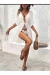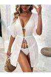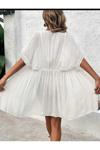 Melonika Kolları Dantel Göpürlü Belden Baglamalı Şifon Pamuklu Pla Elbisesi