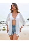 Melonika Kolları Püsküllü Şifon Kumaş Oversize Plaj Elbisesi