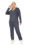Melsay Butik Antrasit V Yaka Yakası Şerit Detaylı Eşofman Takımı
