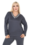 Bu gündelik giyim ürünü, büyük beden kadınlar için tasarlanmıştır. %80 Cotton %15 Polyester %5 Likra kumaştan yapılmış olan bu ürün, dayanıklı yumuşak ve rahat bir giyim deneyimi sunar. Bu ürün, hareket özgürlüğü sağlayan teri içeride muhafaza etmeyip anında dışarı attığı için de tercih sebebidir. Basit bir tasarıma sahip olan bu giyim ürünün kumaşı genellikle kışlık kıyafetlerin üretiminde kullanıldığı ,için terletmez. Kışın pamuk ve polyester ile bir arada üretildiği kıyafetler sıcak tutar Bu sebeple vücut hatlarını kamufle ederek şık bir görünüm sağlamaktadır. Birçok farklı kıyafetle kombinlenebilir ve günlük hayatta giymek için mükemmel bir seçenektir. Ayrıca, çamaşır makinesinde yıkanabilen bir üründür ve bakımı oldukça kolaydır. Bu gündelik büyük beden kadın giyim ürünü, gün boyu rahatlık ve şıklık arayan kadınlar için ideal bir seçenektir.