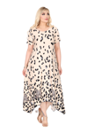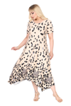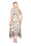 Melsay Butik Bej Sulu Leopar Desenli Asimetrik Kısa Kollu Elbise