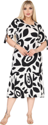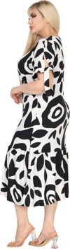 Melsay Butik Beyaz Nazar Desen Kolları Bağlamalı Kısa Kollu Elbise