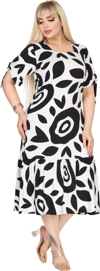 Bu gündelik giyim ürünü, büyük beden kadınlar için tasarlanmıştır. %95 Viskon %5 Likra kumaştan yapılmış olan bu ürün, yumuşak ve rahat bir giyim deneyimi sunar. Bu ürün, geniş bir kesime sahip olduğu için vücut hatlarını güzel bir şekilde dengeleyerek kadınların kendilerini iyi hissetmelerini sağlar. Basit bir tasarıma sahip olan bu giyim ürünü, göğüs kısmın