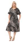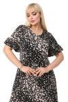 Melsay Butik Çakıltaşı Desen Cepli Fırfırlı Kısa Kol Kadın Midi Elbise