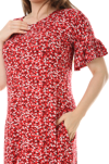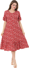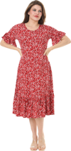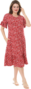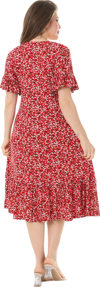Melsay Butik Fırfırlı Cepli Kırmızı Çıtır Desenli Kısa Kollu Midi Elbise