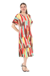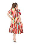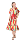 Melsay Butik Fırfırlı Cepli Sarı Yağlıboya Desenli Kısa Kollu Midi Elbise