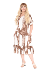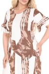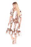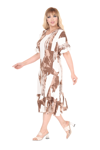 Melsay Butik Fırfırlı Kahve Vintage Desen Cepli Büyük Beden Elbise