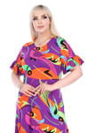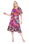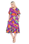Melsay Butik Fırfırlı Kısa Kollu Mor Balık Desenli Kadın Cepli Midi Elbise