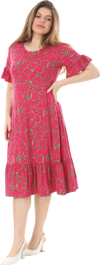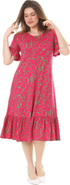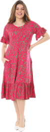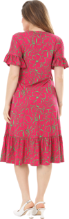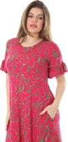 Melsay Butik Fırfırlı Kısa Kollu Pembe Çiçek Desenli Cepli Elbise