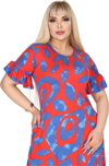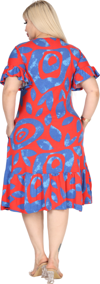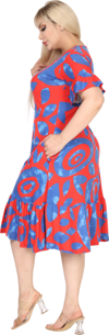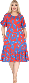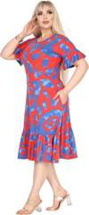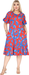 Melsay Butik Kadın Büyük Beden Eteği Fırfırlı Pembe Nazar Desen Cepli Elbise