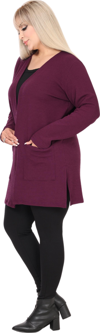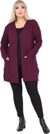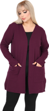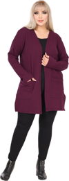 Melsay Butik Kadın Mor Büyük Beden Önü Açık Ceket Yaka Örme Kısa Hırka