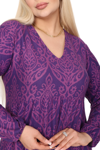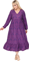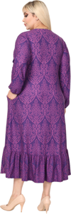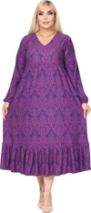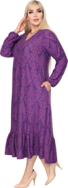 Melsay Butik Kışlık Robalı Yumoş Uzun Kollu Mor Dantel Desenli Elbise