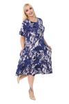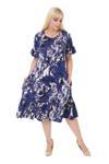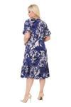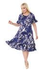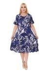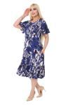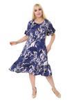 Melsay Butik Mavi Batik Desen Fırfırlı Kısa Kollu Kadın Midi Elbise