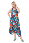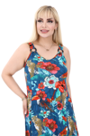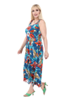 Melsay Butik Papağan Desen Büyük Beden Askılı V Yaka Uzun Elbise