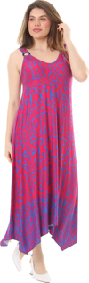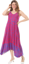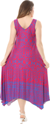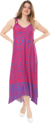 Melsay Butik Pembe Mavi Kilim Desen Askılı V Yaka Elbise