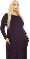 Melsay Butik Püsküllü Cepli Kadın Uzun Kollu Mor Tesettür Elbise