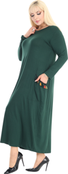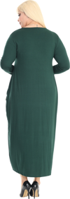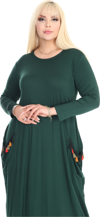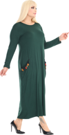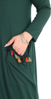Melsay Butik Püsküllü Cepli Kadın Uzun Kollu Zümrüt Yeşili Tesettür Elbise