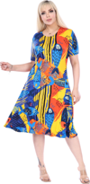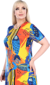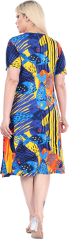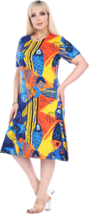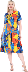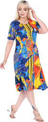 Melsay Butik Sarı Balık Desen Kısa Kollu Büyük Beden Midi Elbise