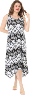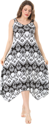Melsay Butik Siyah Beyaz Baklava Desen Askılı V Yaka Elbise