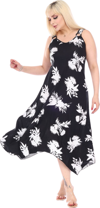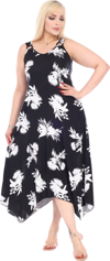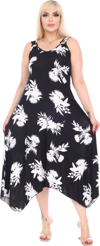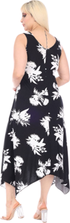 Melsay Butik Siyah Beyaz Yaprak Desen Askılı V Yaka Elbise