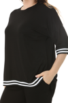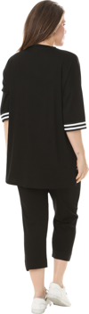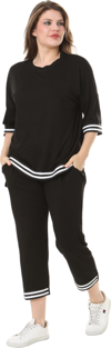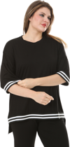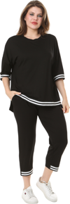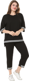 Melsay Butik Siyah Bisiklet Yaka Şerit Detaylı Kısa Kollu Beli Lastikli Kapri Takım