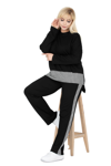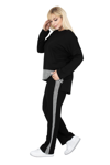 Melsay Butik Siyah Kazayağı Şeritli Büyük Beden Kadın Eşofman Takımı