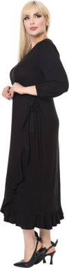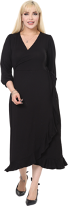 Melsay Butik Siyah Kruvaze Yaka Anvelop Etek Midi Elbise