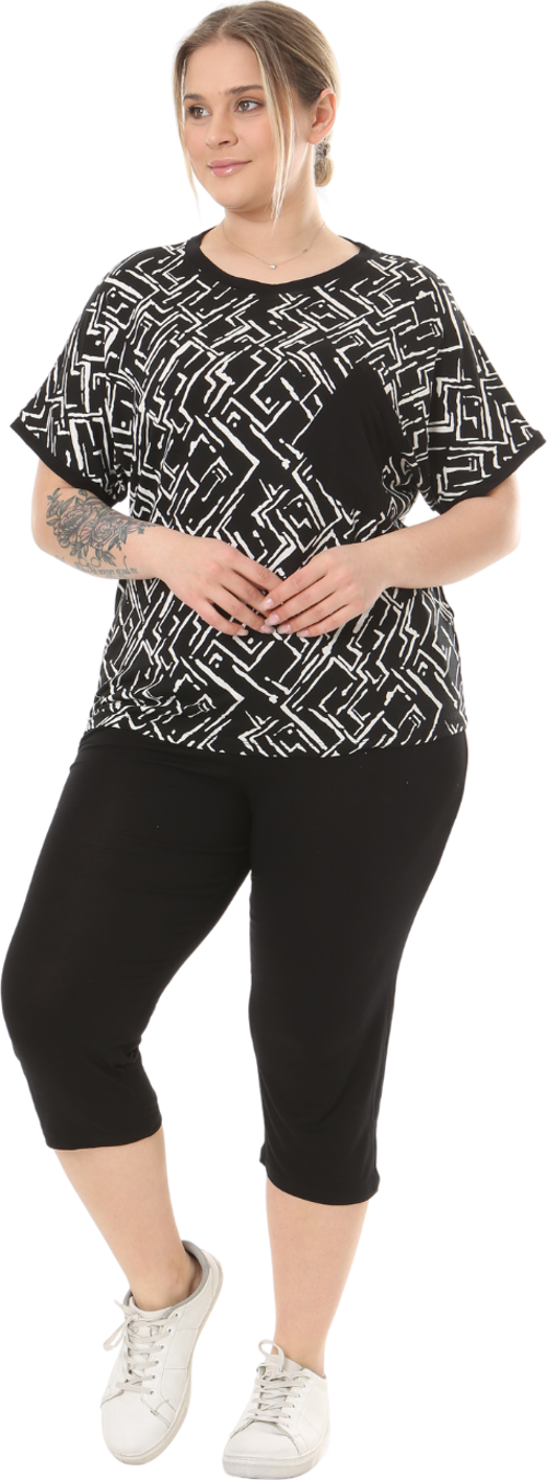 Melsay Butik Siyah Zigzag Desen Çapraz Cep Detaylı Kapri Takım