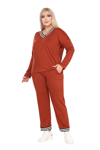 Melsay Butik Tarçın Şerit Detaylı V Yaka Eşofman Takımı