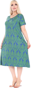 Melsay Butik Yeşil Dantel Desen Kuplu Cepli Kısa Kol Kadın Midi Elbise