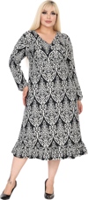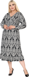 Melsay Butik Yumoş Kumaş Kruvaze Yaka Beyaz Dantel Desen Eteği Fırfırlı Midi Elbise