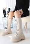 Detay: Topuklu Yandan Fermuarlı Diz Altı Çizme