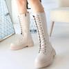 PayBuy Kadın Diz Altı Topuklu Bot Bağcıklı Kalın Topuk Platform Model