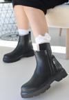 Butik Menta Siyah Cilt Fermuar Aksesuarlı Bot