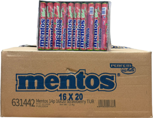 Mentos Çilek Aromalı Çiğnenen Draje Şekerleme ( 37,5 GR * 20 ) * 16 Adet