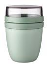 Mepal'in bu göz alıcı Ellipse öğle yemeği kabı iki bölmeye sahiptir, böylece öğle yemeğiniz veya atıştırmalıklarınız için malzemeleri aynı kapta her birinden ayrı tutabilirsiniz. Örneğin yoğurt alt bölmede, meyve veya müsli ise üst bölmede saklanabilir. Malzemeleri karıştırmaya hazır olduğunuzda, iki bölme basit bir bükülme ile birbirinden ayrılır. Ustalıkla, alt kabın kapağı üst bölmenin tabanından oluşturulmaz, tamamen ayrıdır. Bu akıllı tasarım, iki bölümün vidalarını söktüğünüzde ortalığın karışmaması anlamına gelir. Kullanımı da çok basit!