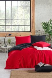 Mer-Tim Ezberbozan Ev Tekstili Mer-Tim Pamuklu Ranforce Çift Kişilik 200X220 Çift Taraflı Nevresim Yorgan Kılıfı Siyah-Kırmızı