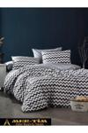 Mer-Tim Pamuklu Ranforce Çift Kişilik Siyah-Gri Zikzak 200x220 Nevresim Seti (Çarşaf Dahil Değildir)