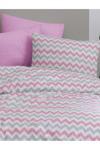 Mer-Tim Ezberbozan Ev Tekstili Mer-Tim Tek Kişilik Lastiksiz Pembe Zikzak Desenli Pamuklu Ranforce Nevresim Takımı 160 X 220