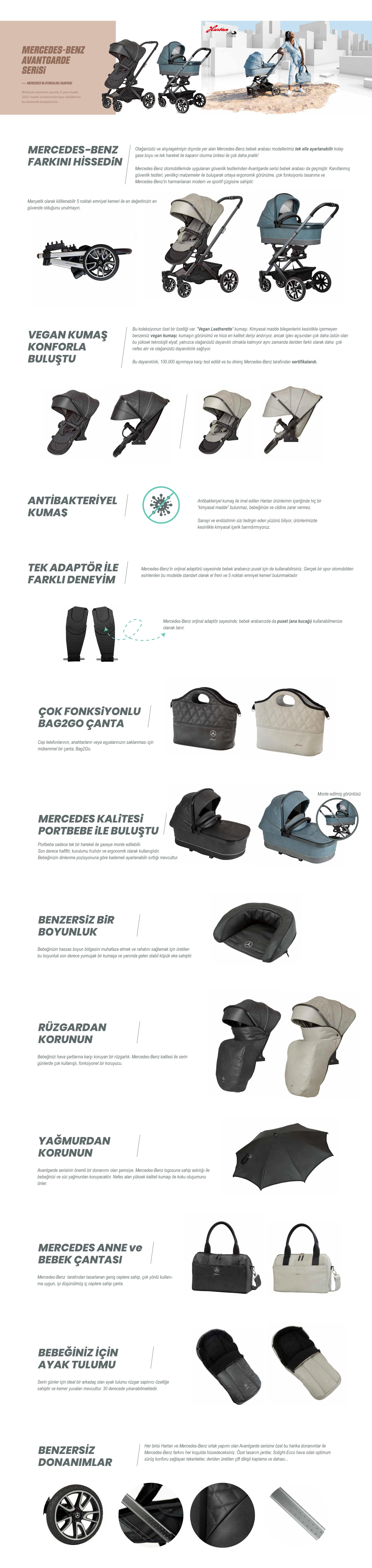 Kalite ve güvenilir hizmet denildiğinde bir numaralı ve dünya devlerinden biri olan Mercedes Benz tarafından üretilen Avantgarde bebek arabası, güvenilir ve bebeklerinizin rahatı için Mercedes Benz en iyisini yapmayı başarmış !