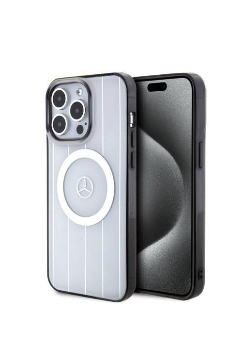 iPhone 15 Pro Max Uyumlu Kılıf Mercedes Benz Lisanslı Magsafe Şarj Özellikli Çift Katmanlı Paralel Çizgi Desenli Kapak