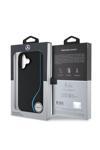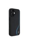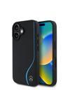 Mercedes Benz İphone 16 Kılıf Mercedes Benz Lisanslı Magsafeli 3D Metal Logolu Mavi Dikey Çizgili Deri Kapak Siyah