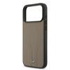 Mercedes Benz İphone 17 Pro Max Uyumlu Kılıf Mercedes Benz Lisanslı M-Safeli Dokulu Desenli Deri Kapak Kahverengi